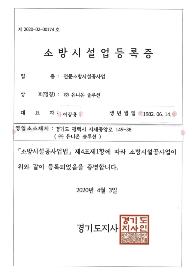 소방시설업등록증