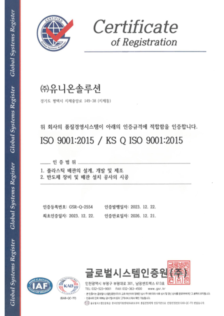 ISO 9001 인증서