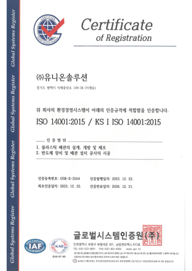 ISO 14001 인증서