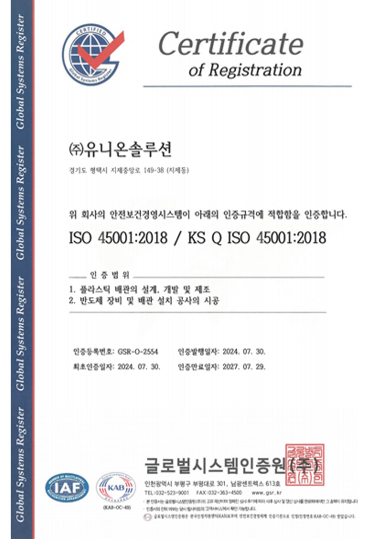 ISO 45001 인증서